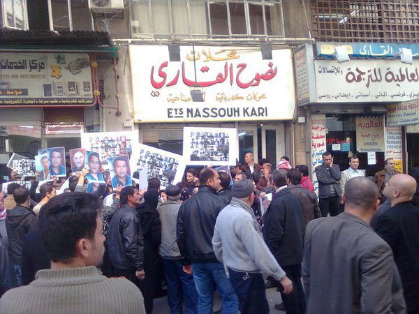 Not to get carried away, the demonstrations that have taken place in Syria have not been large-scale. We are talking about hundreds, not thousands. They did occur right across the country though, with protests taking place in Damascus, Aleppo, Deir az-Zour, Qamishli and Hassaka. The video above is for a demonstration that took place on Tuesday 15 March in the heart of Damascus. A second demonstration in the capital was organized by family and relatives of political prisoners the following day on Wednesday 16th March [pic below] opposite the Interior Ministry building. To put things into perspective, the last time an anti-regime protest took place in Syria was 31 years ago. These demonstrations, however modest, are an important ice-breaker and a harbinger of things to come.