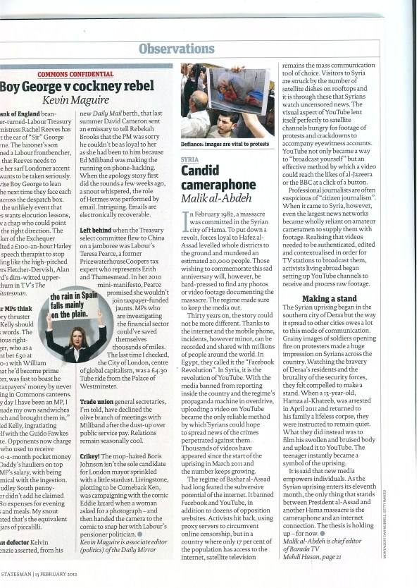 On January 26th 2012 I participated in a BBC College of Journalism panel discussion on Syria. The attendance consisted of senior BBC journalists and broadcasters, some of whom are household names in the UK. What they were looking for was a nuanced understanding of what is happening in Syria from experts, which goes beyond the superficial and the cliche.